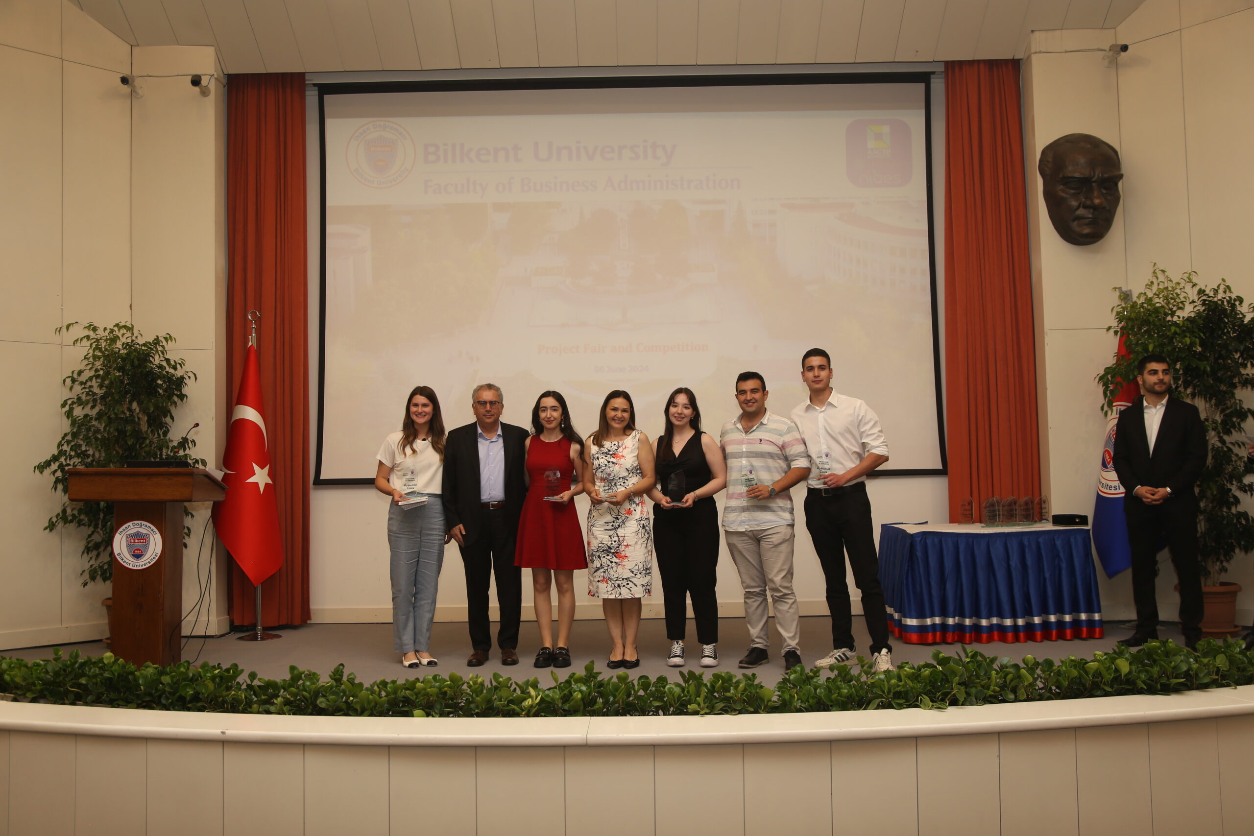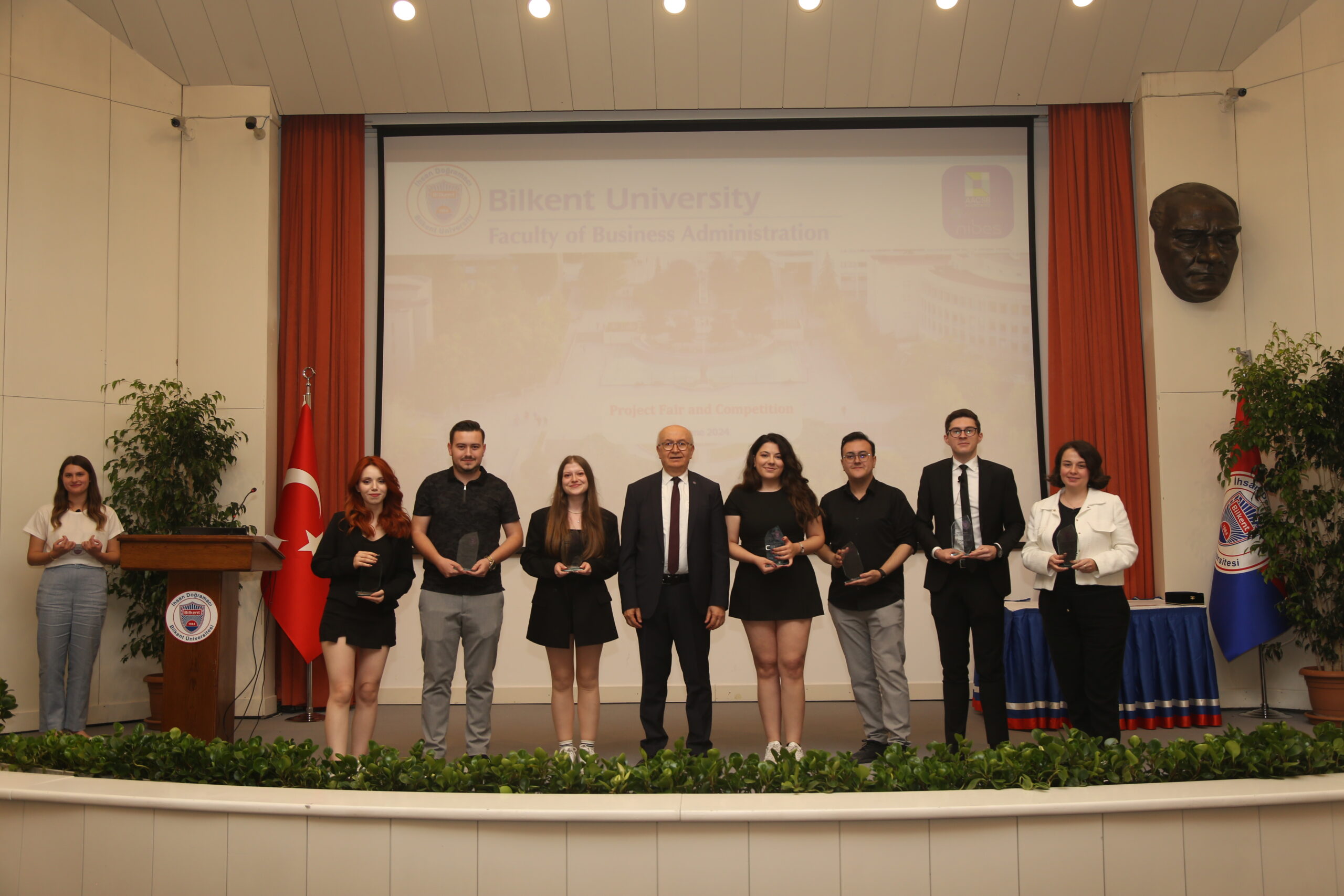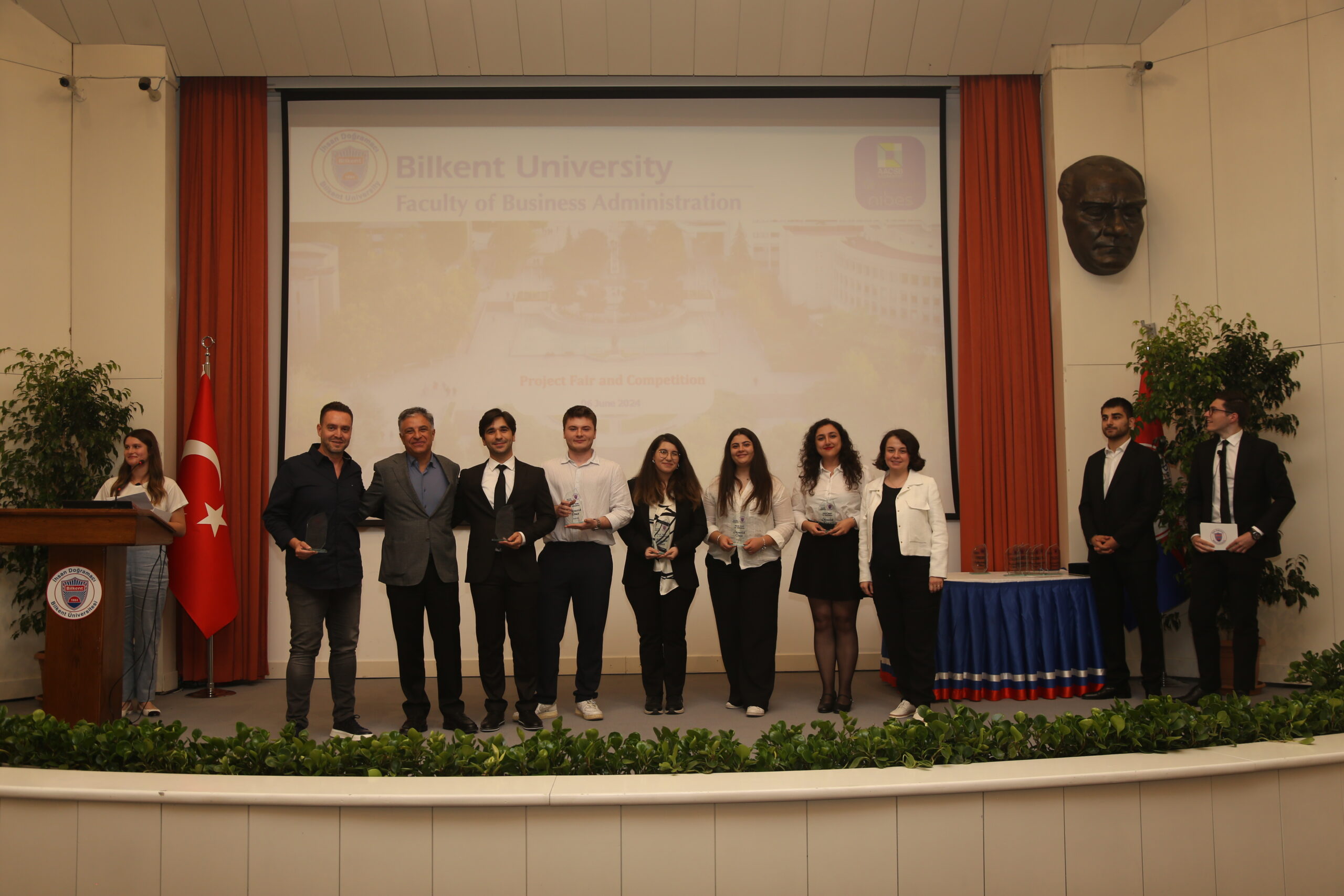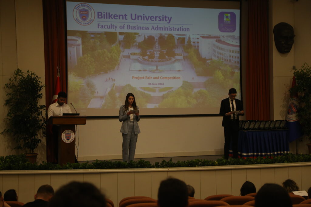 The Third Project Fair and Competition of Bilkent University Faculty of Business Administration was held on June 6, 2024 at Mithat Coruh Auditorium. The event provided a platform for 104 senior students, formed nineteen teams, to display their research and solutions to real-world business challenges, which they developed in collaboration with eighteen different companies.