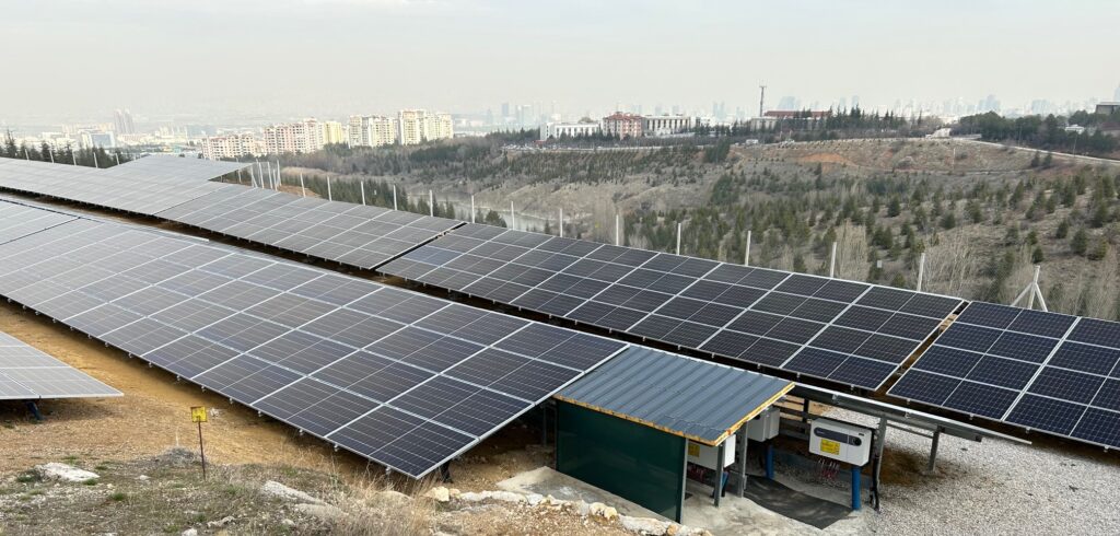 To meet the electricity needs of Bilkent University and Bilkent Holding Companies, a 9.9 MW Solar Power Plant (SPP) will be established in the Gölbaşı District of Ankara Province. Bilenerji Bilkent Energy Production Industry and Trade Inc. plans to implement the 9.9 MW Solar Power Plant (SPP) project in Ankara Province, Gölbaşı District, to meet the electricity needs of Bilkent University and Bilkent Holding Companies. The project is valued at 121.5 million Turkish Lira. The solar power plant to be established will use a total of 18,408 panels and 40 inverters, with a total of 708 arrays. The plant will produce 17,325,000 kWh of electricity annually. The generated electricity will be connected to the nearest electricity pole receiving energy from Emirler TM at a voltage of 34.5 kV. Source: Bilenerji to establish a 10 MW SPP in Ankara.